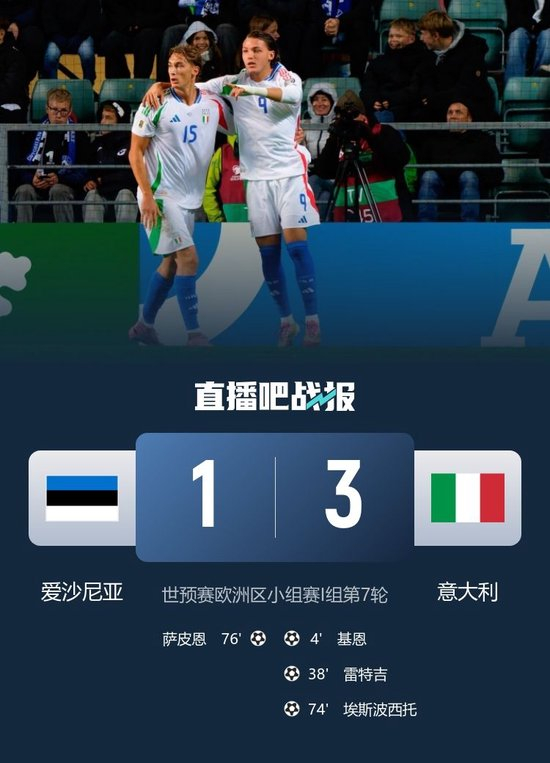 第74分钟,意大利左路策动攻势,斯皮纳佐拉与队友配合后下底传中,埃斯波西托抢点破门,意大利3-0爱沙尼亚。↓