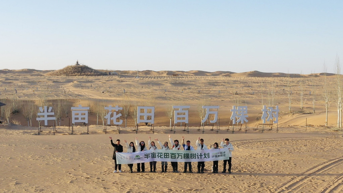 半亩花田发起的“半亩花田百万棵树计划”始于2021年3月。品牌与内蒙古阿拉善地区的林业部门携手,由创始人亓云吉亲自带队前往沙漠,身体力行地参与植树固沙,为生态保护贡献力量。这项计划的核心在于“源于自然,回馈自然”。品牌从天然花植中汲取灵感创造产品,同时通过植树造林回馈生态系统,形成了一个从索取到反哺的良性闭环。